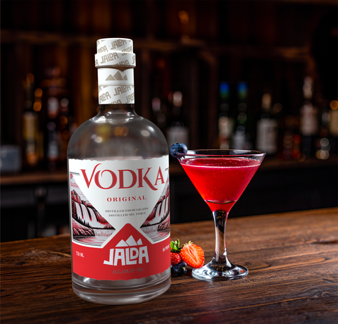 Agitar con hielo y servir en copa martini. Decorar con arándanos frescos.
